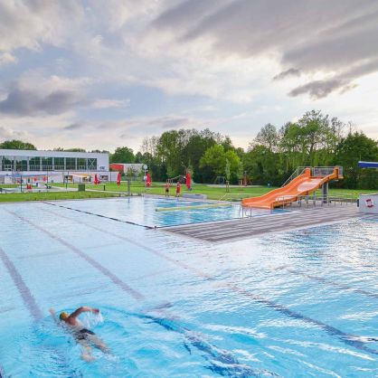 - Hallenbad: ca. 1.350 m², Freibad: ca. 1.030 m²